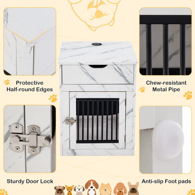 2.Large Additional Storage: The 20" x 25.5" (L x W) tabletop of dog kennel withstands a weight of 100 lbs to hold various items, like lamps, photos, cups, etc. Plus, it has a 15.5" x 15.5" x 3" (L x W x H) drawer, allowing storage of dog toys, food or snacks.