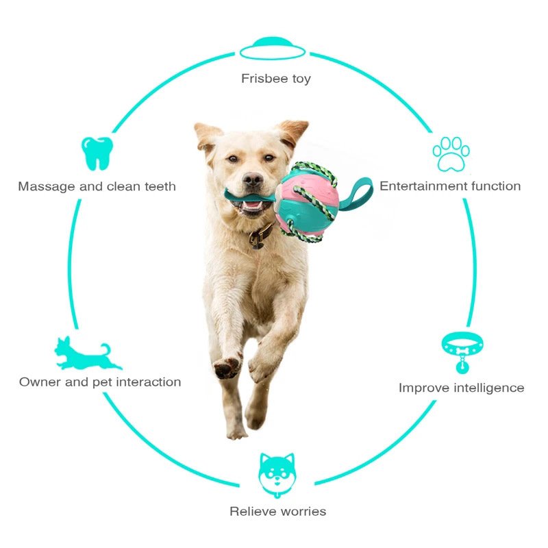 [Super creative]: Unique frisbee ball design. It can be flattened from a sphere into a frisbee, thrown and then automatically bounced back into a sphere in 3-5 seconds during flight. It's easy to throw, throws far, flies high and has good flight performance. You can use it either as a dog ball or as a dog frisbee toy, I am sure your dog will love it too.[Multifunctional outdoor dog toy]: This is a multifunctional fun toy that combines a bounce back frisbee ball, interactive training ball, teething ball, tug of war toy and outdoor sports entertainment for multiple playtime fun for your dog.[Interactive training ball]: You can throw the toy with your hand or kick it with your foot and let your dog retrieve it. It can also be used for interactive water play when the dog is swimming outdoors, enhancing the bond between owner and dog.[Tug of war toy]: You can use this toy as a tug of war with your dog by holding one end of a woven nylon rope, which can enhance relationship between owner and dog, it can also improve your dog's fitness.[Teething ball]: The toy is surrounded by cotton chewing rope, which not only stimulates the dog's interest in chewing the toy, but also effectively removes tartar, food debris or dirt from the dog's teeth, protecting the oral health.[Decompression toys]: Multiple dogs can play together and chase each other to stimulate the dogs' desire to win, improve their intelligence and reduce daily anxiety, better vent their energy and release mental stress.[Easy to use and carry]: It can be flattened and secured with a string to fit in a bag, saving space and making it easier to carry.
