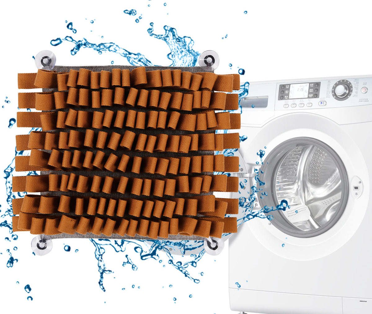 1.The Sniifer-Grip Snuffle Mat is great for both Cognitive Development and Digestive Aid. Simply place treats or dry food inside and watch your pet go to work!