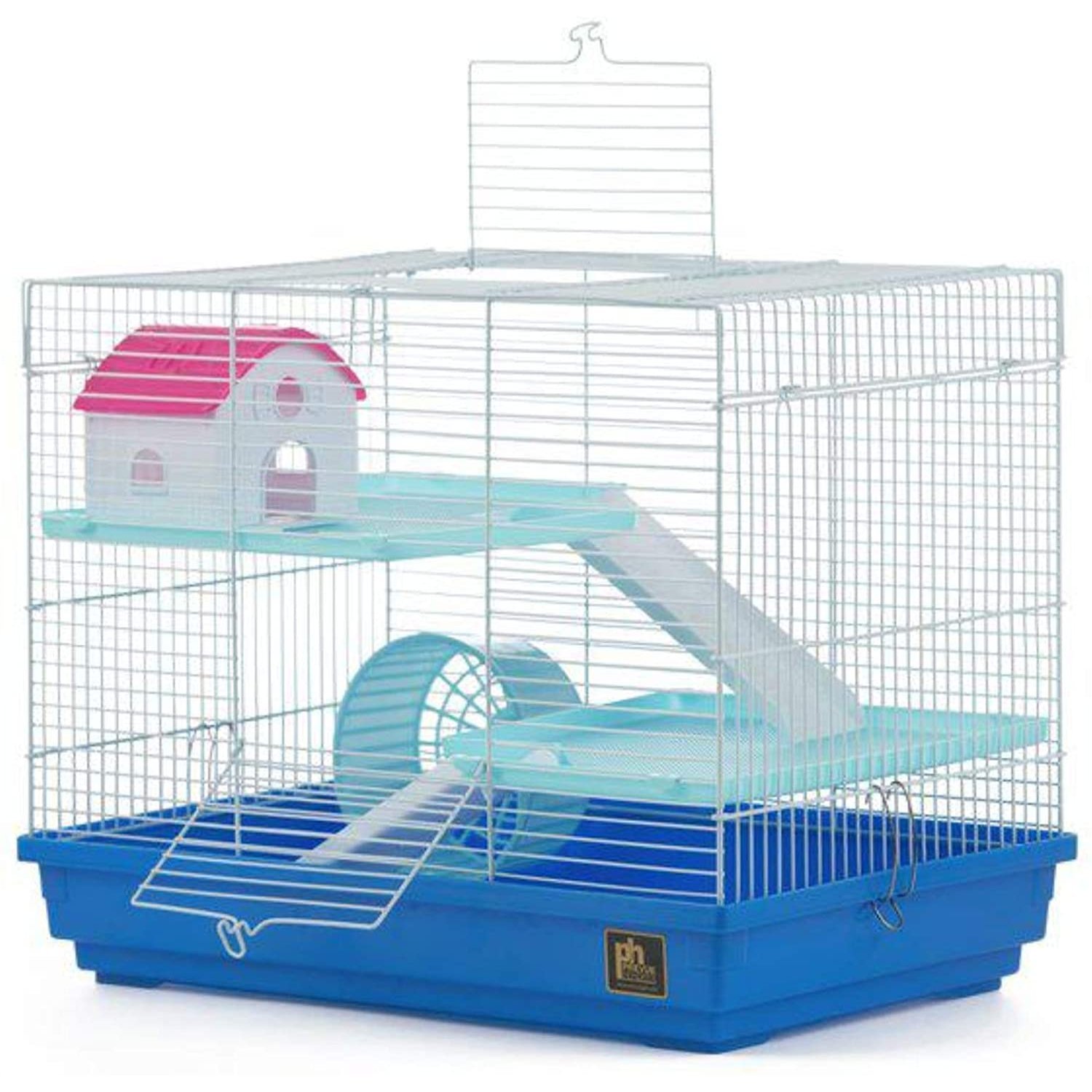 Prevue Pet Products Critter Clubhouse 2055 is a complete home for your hamster or gerbil. Includes two ladders and two platforms for plenty of room to play. A hideaway house gives your pet a place to tuck away, satisfying their natural hiding instincts. Also included is an exercise wheel to keep your hamster or gerbil entertained while maintaining necessary activity levels. Owner-friendly features include an easy access door plus a removable bottom grille and pull-out tray for convenient cleaning. Ideal for hamsters and gerbils our Critter Clubhouse measures 18" Long, 11 1/2" Wide, 14 1/2" High with 3/8" wire spacing.